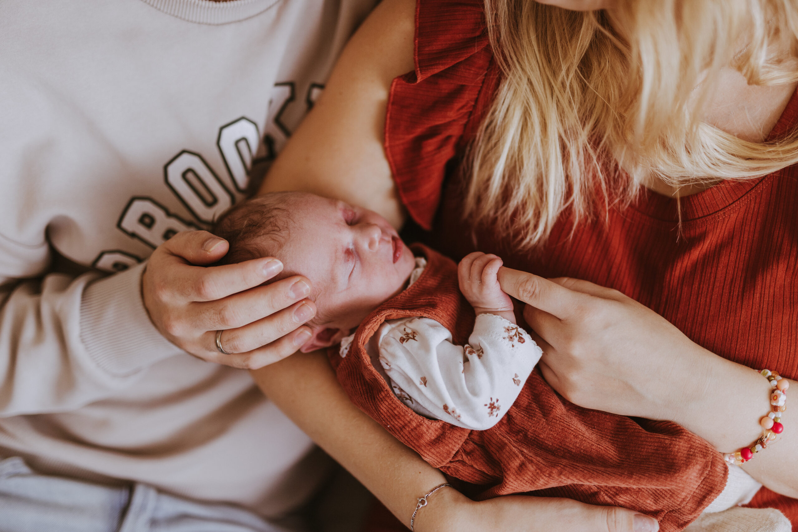 Daar is de kleine dan. Na maanden groeien in de buik is jullie baby’tje er eindelijk! De onvoorwaardelijke liefde en band die jullie voelen voor je baby’tje; dat wil ik vastleggen! De newbornshoot vindt plaats bij jullie thuis. Ik ga op een rustige en kalme manier te werk en volg het tempo van jullie en jullie kindje. De foto’s kunnen gemaakt worden in verschillende settings, zoals in de woonkamer of slaapkamer. Het wordt geadviseerd om binnen 10 dagen na de geboorte een newbornshoot te doen, waarbij jullie baby’tje veel slaapt. En dan zijn ze nog zo inimini! Maar mocht dat wegens omstandigheden niet lukken, is het natuurlijk altijd mogelijk om het erna ook te doen.